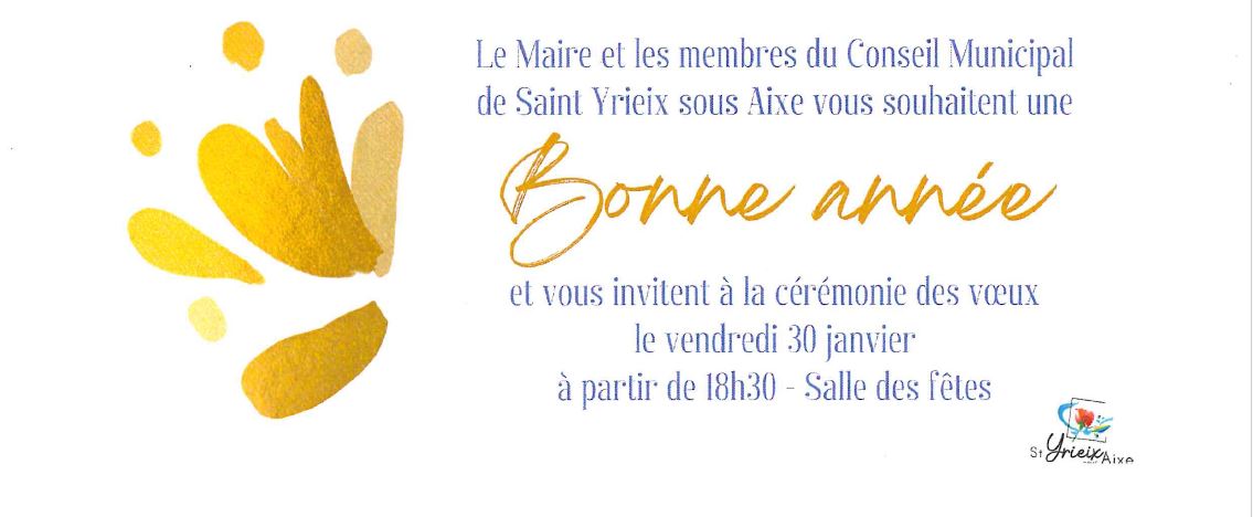 Voeux 2026 auxquels tous les habitants de Saint-Yrieix-sous-Aixe sont invités. Ce sera l'occasion de partager l’habituel verre de l’amitié.